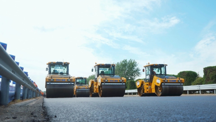 隨后,由XD133S鋼輪壓路機進行壓實和收面: