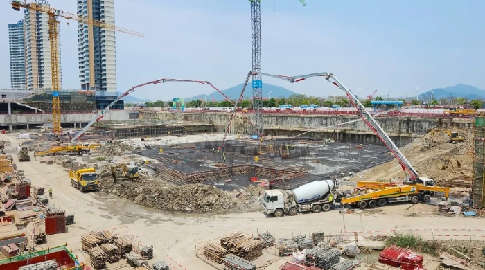 據(jù)了解,橫琴科學(xué)城(一期)是全國(guó)最大的EPC房建項(xiàng)目,涵蓋31棟建筑,用地面積約32.2萬(wàn)平方米,總建筑面積高達(dá)116萬(wàn)平方米。而此次施工更是需要一次性澆筑5000方C35標(biāo)號(hào)混凝土,這無(wú)疑是一場(chǎng)對(duì)設(shè)備性能與施工團(tuán)隊(duì)能力的嚴(yán)峻考驗(yàn)。