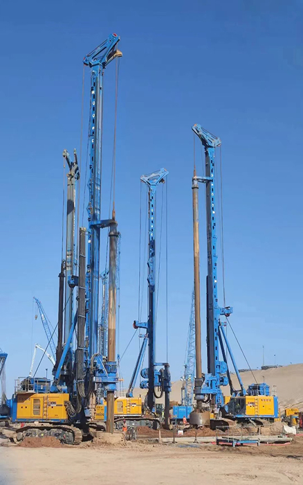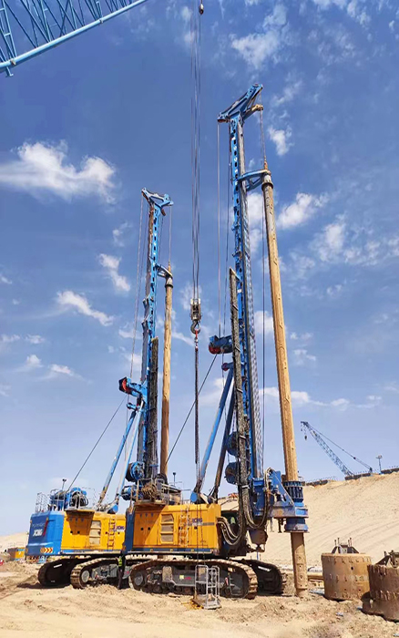 客戶共采購4臺徐工大噸位旋挖鉆機(jī),主要進(jìn)行 NEOM新城地下車庫與輕軌項(xiàng)目施工。施工樁60-90m、樁徑2-2.5m、施工深度200m,面對沙土地質(zhì),徐工旋挖鉆機(jī)游刃有余,平均每天完成3根樁的施工。