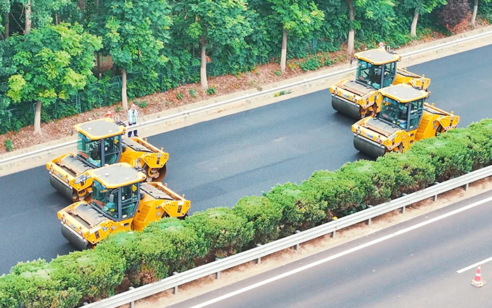 在攤鋪工序后即開始路面壓實(shí)工作