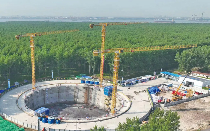 張靖皋長(zhǎng)江大橋南航道橋北主塔工區(qū)1.5萬(wàn)噸米塔式起重機(jī)順利驗(yàn)收,徐工XGT15000-600S最大起升高度400米,最大起重量600噸,搭載了10項(xiàng)世界首創(chuàng)技術(shù)。