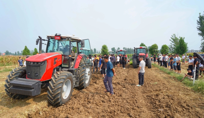 徐工農業(yè)機械潛心研制的智能化XT系列拖拉機輪番上陣,全程高標準演示深翻、耙地、旋耕、牽引運輸?shù)榷囗椬鳂I(yè),動力強勁,各顯身手。