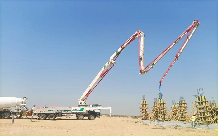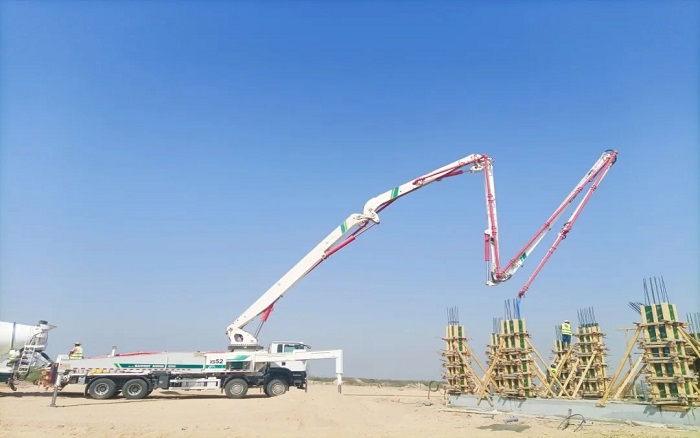 施工現(xiàn)場,秒變徐工52米泵車秀場