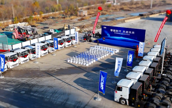 戰(zhàn)鼓催征,鳴笛起航。近日,百臺徐工新能源純電動牽引車交付儀式在河北滄州順利舉辦,一排排徐工新能源牽引車整齊列陣,以昂揚之姿奔向滄州砂石運輸“第一線”,為滄州區(qū)域脫碳進(jìn)程寫下生動注腳。