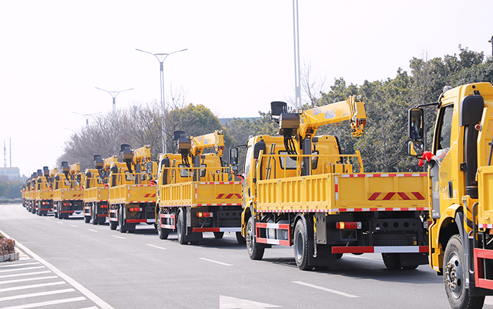 一輛輛隨車起重機緩緩駛出工廠,它們將奔赴各個城市建設項目現場,成為城市建設的得力 “干將”。這批隨車起重機的投入使用,將為城市建設帶來顯著的推動作用。在城市基礎設施建設中,它們能夠高效地搬運和安裝大型構件,加快工程進度;在城市改造項目里,靈活的操作性能讓其在狹窄空間內也能施展拳腳,助力城市面貌煥然一新。