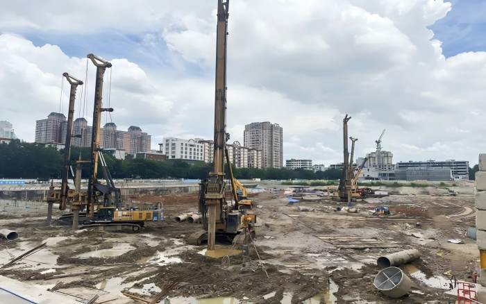 施工區(qū)地質構造復雜,石灰?guī)r、沙層,粘土和溶洞交錯,樁深20-30m,樁徑0.8-1.4m,且面臨塌方、縮孔、漏漿等危險。如此高難度的施工條件,項目方果斷選擇徐工旋挖鉆機進行助力。