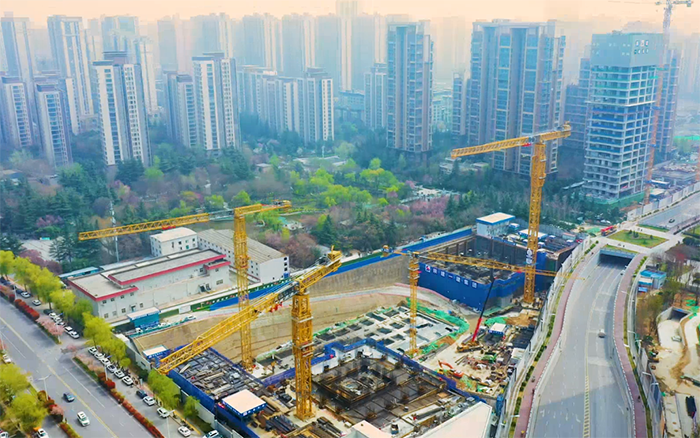 兩臺徐工超大噸位塔機XGT1350-64S是該項目的吊裝主力軍,主要負責(zé)鋼結(jié)構(gòu)及主體施工材料的吊裝工作,與徐工XGT600-25S、XGT6015-8S1配合作業(yè),為古城西安再添城市CBD。