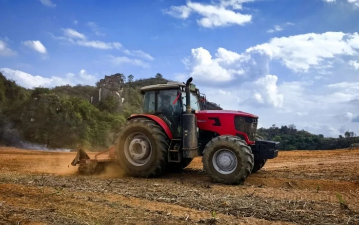 XT1604-6B拖拉機(jī)在崇左的坡地蔗田里如履平地,已經(jīng)在當(dāng)?shù)赝瓿纱笠?guī)模示范應(yīng)用,硬是把“望天田”變成了“聚寶盆”。