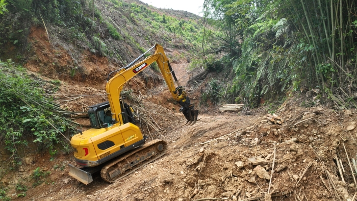 在鄭俊回鄉(xiāng)之前,父輩大多是靠人工作業(yè),僅有的設(shè)備就是幾臺非常低端的輪挖,也就能夾裝木材,偶爾修修路的話,平整度、壓實度都很差,大車走幾趟就壞了,遇到稍微陡一點的坡也上不去,嚴重影響了作業(yè)進度。