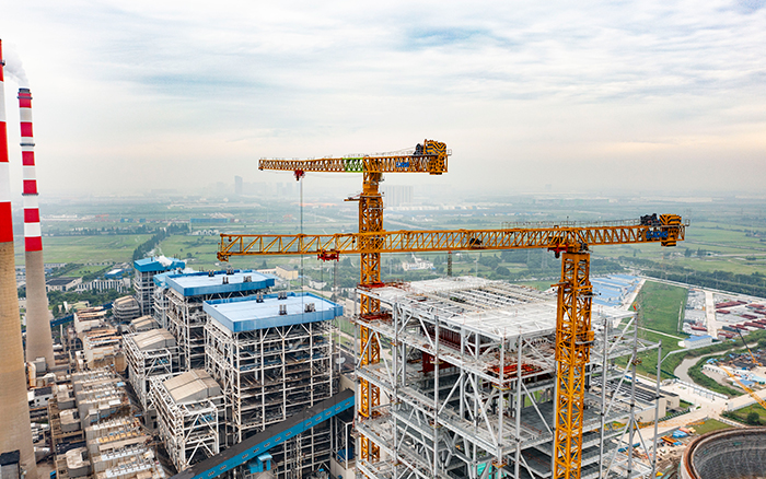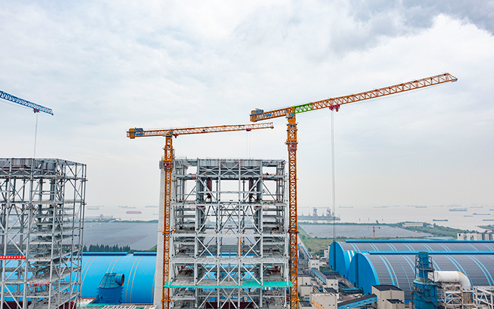 側(cè)望長(zhǎng)江畔,機(jī)器轟鳴、江水潺潺,華能太倉(cāng)電廠機(jī)組擴(kuò)建項(xiàng)目施工現(xiàn)場(chǎng)一派繁忙景象,XGT3100-160S、XGT1350-64S兩臺(tái)徐工超大塔穩(wěn)穩(wěn)矗立在高聳的鋼架間吊裝作業(yè)。