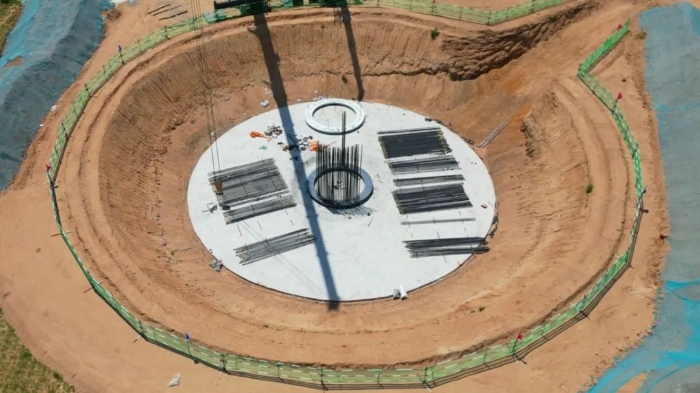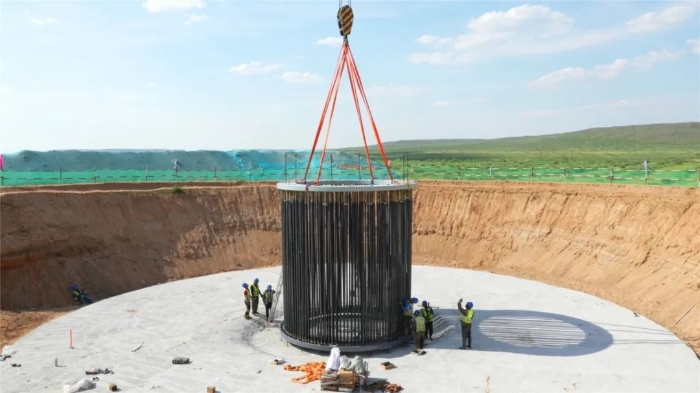 此次進行的是風(fēng)電基礎(chǔ)吊裝,重達17噸的鉚盤穩(wěn)落在基坑,214根鉚桿密集插裝,每一根都必須精準插入孔位。