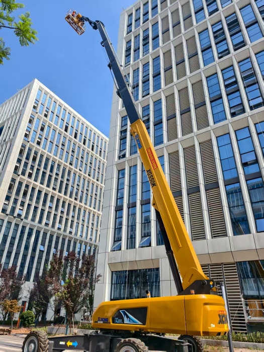 面對(duì)產(chǎn)業(yè)園體量龐大、結(jié)構(gòu)復(fù)雜、維護(hù)點(diǎn)分散且高度需求大的挑戰(zhàn),XGS50K憑借其50米的超高作業(yè)高度和強(qiáng)大的跨越能力大顯身手。其靈活伸縮的小飛臂輕松越過(guò)設(shè)備管線、通風(fēng)設(shè)施等障礙物,精準(zhǔn)直達(dá)高層幕墻檢修點(diǎn);超強(qiáng)的平臺(tái)承載能力和出色的作業(yè)穩(wěn)定性,為技術(shù)人員在高空進(jìn)行檢測(cè)、清潔等精細(xì)操作提供了堅(jiān)實(shí)、安全的保障,顯著提升了維護(hù)效率。
