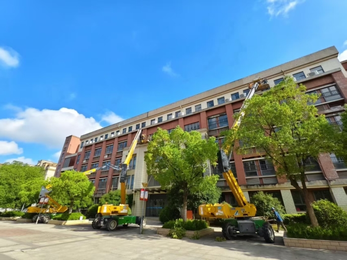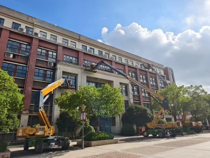 此次施工通過使用徐工高空作業(yè)設備,有效避免了傳統(tǒng)腳手架對校園場地占用大、搭設周期長的影響,體現(xiàn)了現(xiàn)代化施工設備在校園維修改造中的顯著優(yōu)勢。