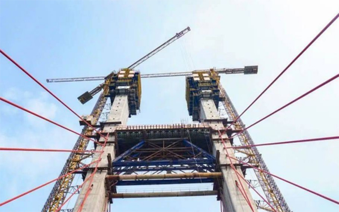 隨著4號主塔、3號主塔順利封頂,大橋建設(shè)步入快車道。