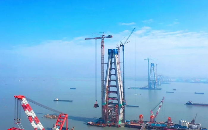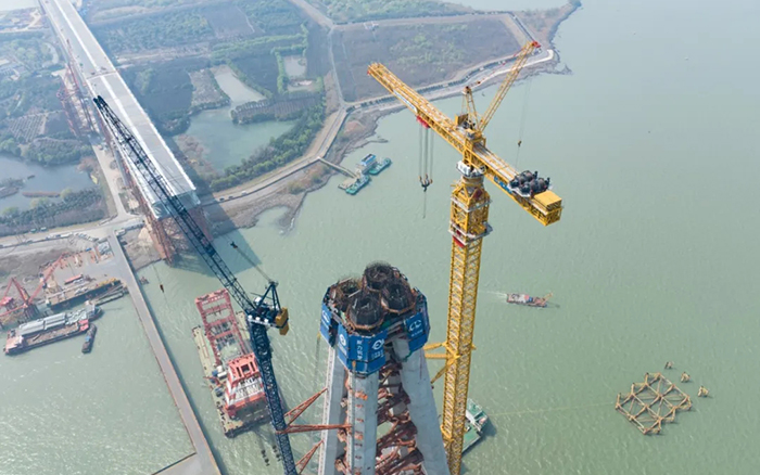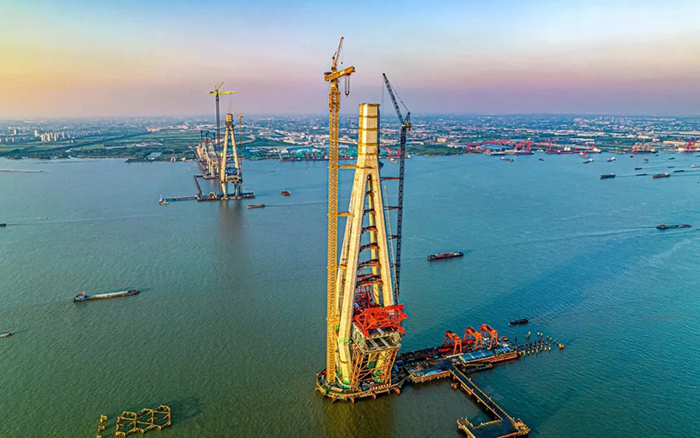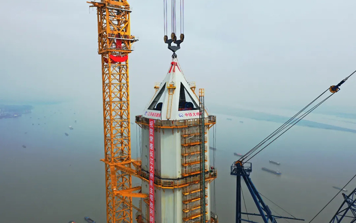 高350米的常泰長江大橋南主塔順利封頂