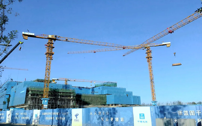 這片建筑群是雄安新區(qū)中國(guó)電信智慧城市產(chǎn)業(yè)園項(xiàng)目, 徐工S系列塔機(jī)奮戰(zhàn)在施工一線,見證雄安崛起。