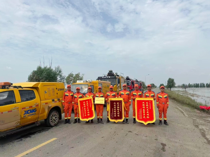 9月5日,內(nèi)蒙古自治區(qū)防汛抗旱指揮部于呼和浩特市托克托縣人民政府舉行防汛搶險(xiǎn)隊(duì)伍歡送儀式,徐工應(yīng)急救援隊(duì)等馳援內(nèi)蒙古的隊(duì)伍榮獲錦旗與證書。