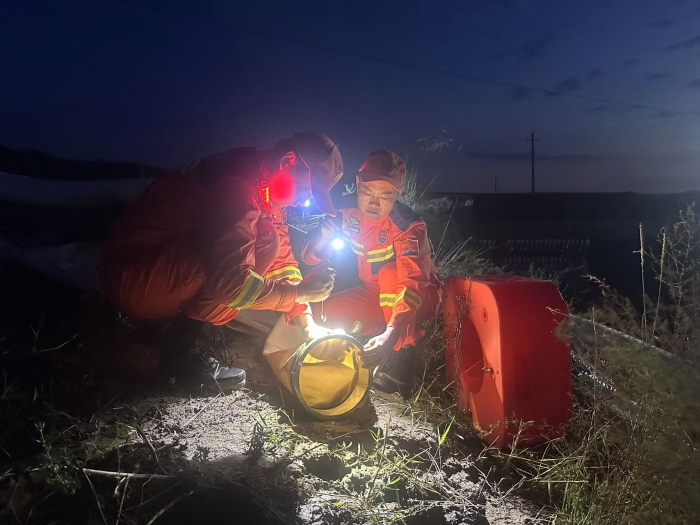 10名隊(duì)員輪班倒,迅速進(jìn)入“24小時(shí)連軸轉(zhuǎn)”狀態(tài)。沒有一絲猶豫,他們踩泥漿、涉深水,卷起褲管開始鋪設(shè)水帶,科學(xué)調(diào)整作業(yè)方案。為避免抽水作業(yè)沖刷壩體,他們利用橡皮艇涉水劃到農(nóng)田中間固定水帶,以專業(yè)判斷化解潛在風(fēng)險(xiǎn),彰顯科技救援的力量。