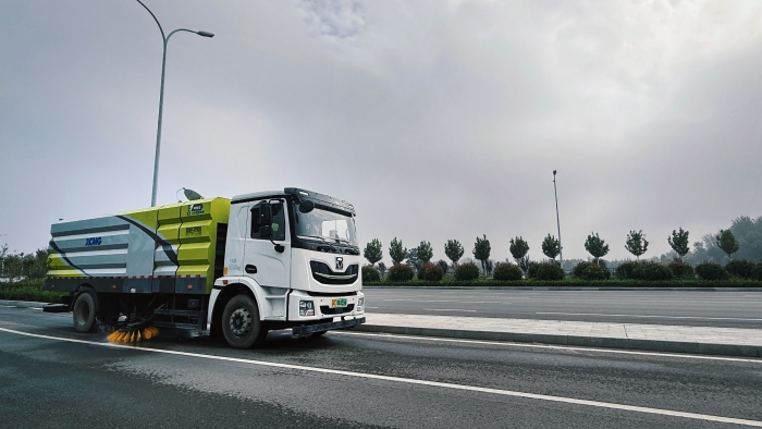 菏澤市牡丹區(qū)人民路,這條貫穿城區(qū)南北的“黃金中軸線”,不僅是交通要道,更是產(chǎn)業(yè)興、生態(tài)美的城市名片。然而,日均數(shù)萬輛車流與密集人流量帶來的揚(yáng)塵、垃圾,對(duì)道路清潔提出了嚴(yán)苛挑戰(zhàn)。如何兼顧高效保潔與綠色發(fā)展?徐工18噸純電洗掃車給出了答案。
