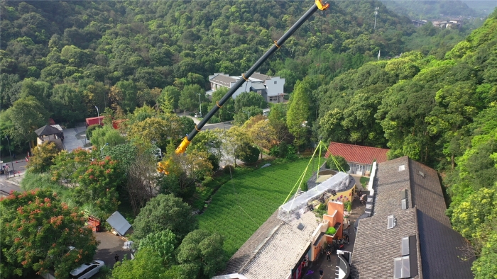 此次影視燈架的吊裝,對(duì)于身懷絕技的XCT130G8-1來說,更像是一次從容的“小試牛刀”。設(shè)備前一天抵達(dá),第二天即刻投入實(shí)戰(zhàn)。此次任務(wù)要求將燈架長(zhǎng)時(shí)間懸停,設(shè)備的穩(wěn)定性和微動(dòng)性至關(guān)重要。