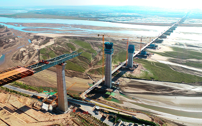項(xiàng)目施工地點(diǎn)臨近黃河,地質(zhì)結(jié)構(gòu)復(fù)雜、空氣濕潮。同時(shí),大橋主橋最高墩是鋼箱梁連續(xù)頂推施工節(jié)點(diǎn)的控制性橋墩,施工難度大、風(fēng)險(xiǎn)高、工期要求緊。