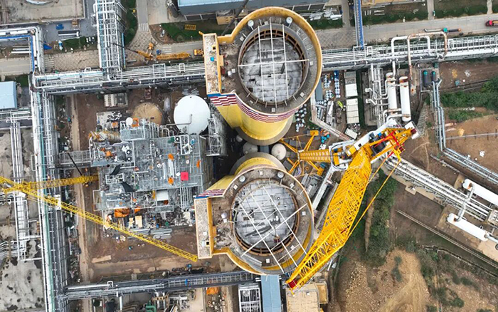 此次吊裝的高塔是化工廠的“心臟”設(shè)備,施工難度堪比“在高空拼樂(lè)高”,吊裝主要任務(wù)為直徑30米、重量達(dá)47噸的圓形橫梁鋼構(gòu),需在小狹小空間一次性就位,精準(zhǔn)“落座”120米高塔頂部,吊裝誤差需控制在±5毫米內(nèi),否則將直接影響后續(xù)設(shè)備密封性能與運(yùn)行安全。