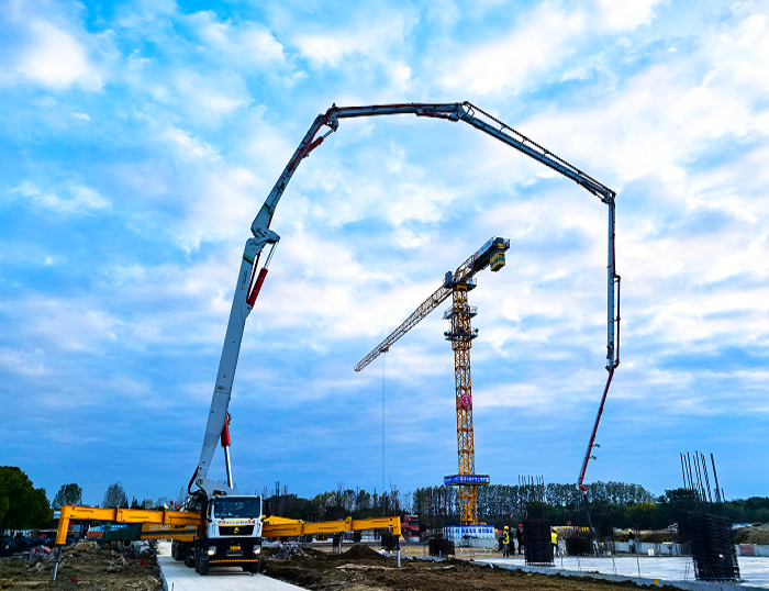 該設(shè)備依托71.1米超長臂架,實現(xiàn)廣域覆蓋與厘米級精準布料,180m3/h的輸送能力保障大方量澆筑需求。