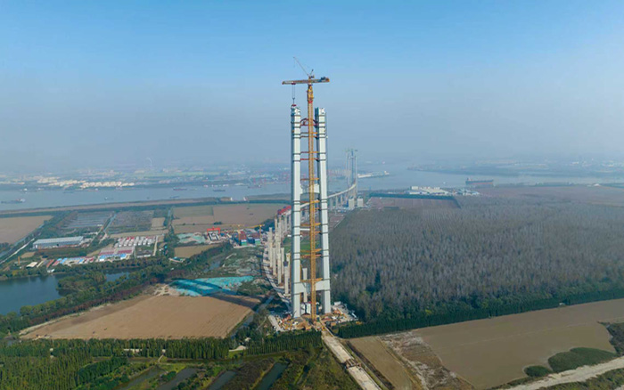 南航道橋北主塔塔柱主體工程全部完工