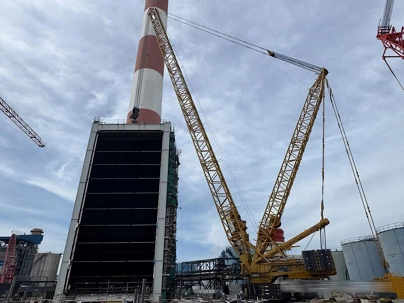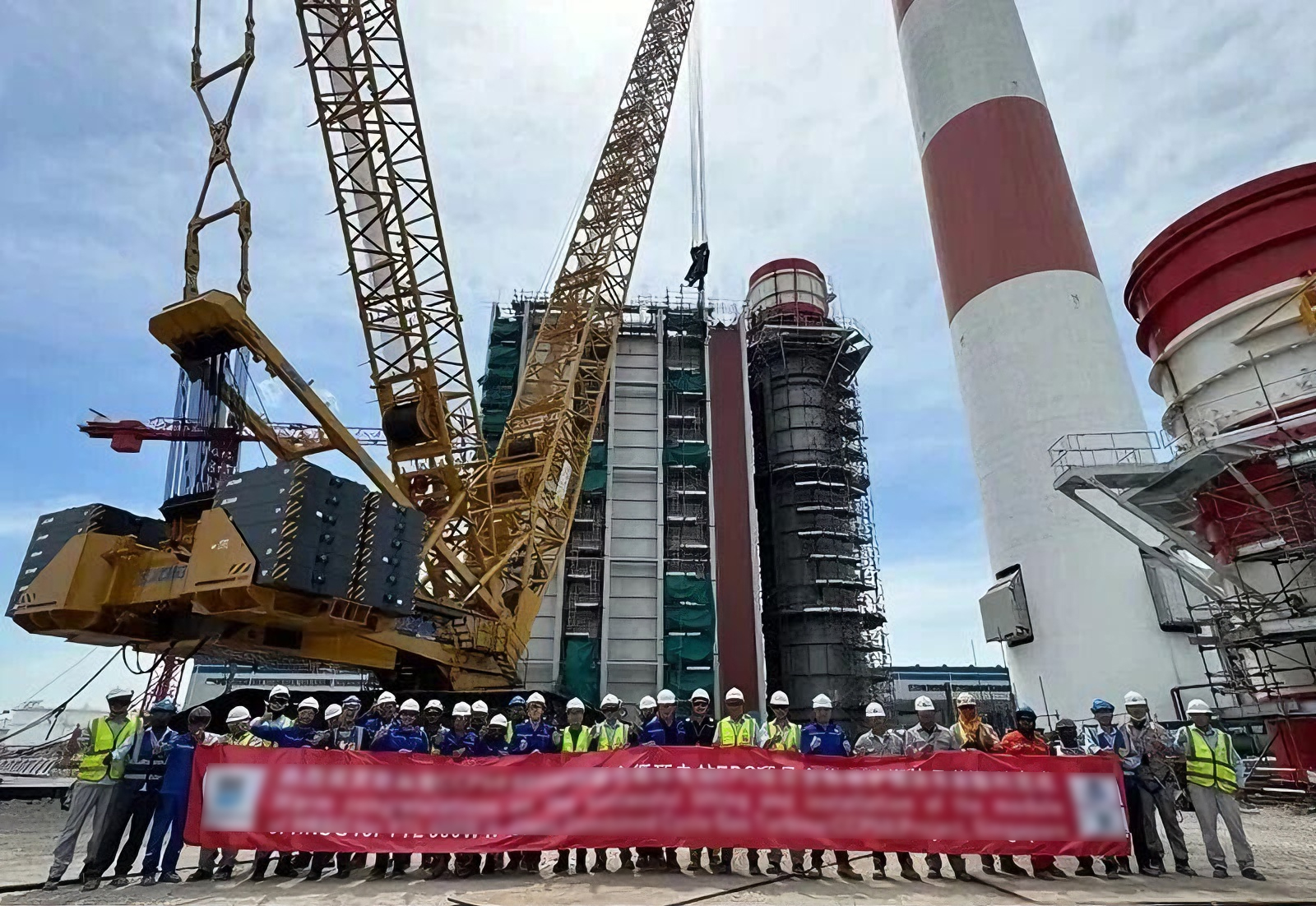 近日,在東南亞600兆瓦聯(lián)合循環(huán)電站項目建設(shè)現(xiàn)場,徐工XGC16000(1250噸級)履帶起重機圓滿完成余熱鍋爐全部受熱面模塊的吊裝任務(wù)。