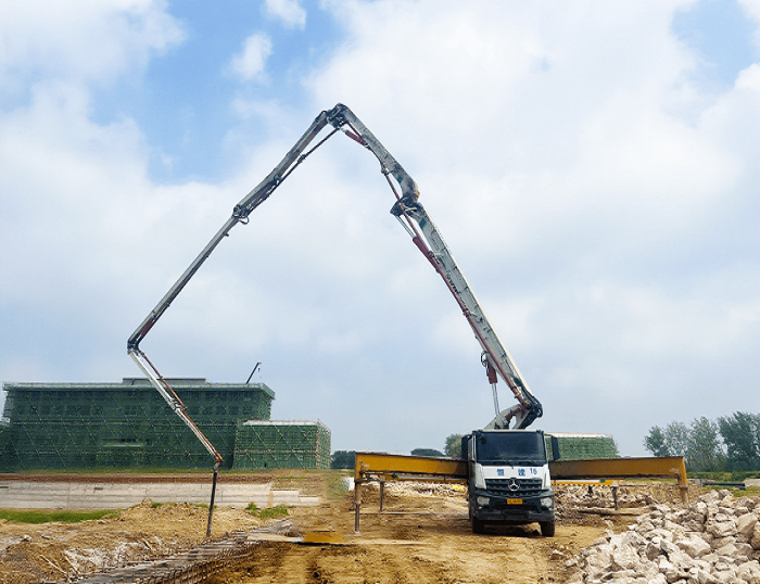 其超長臂架可全面覆蓋施工區(qū)域澆筑范圍,搭載的智能控制系統(tǒng)實現(xiàn)混凝土精準輸送,顯著提升施工效率。