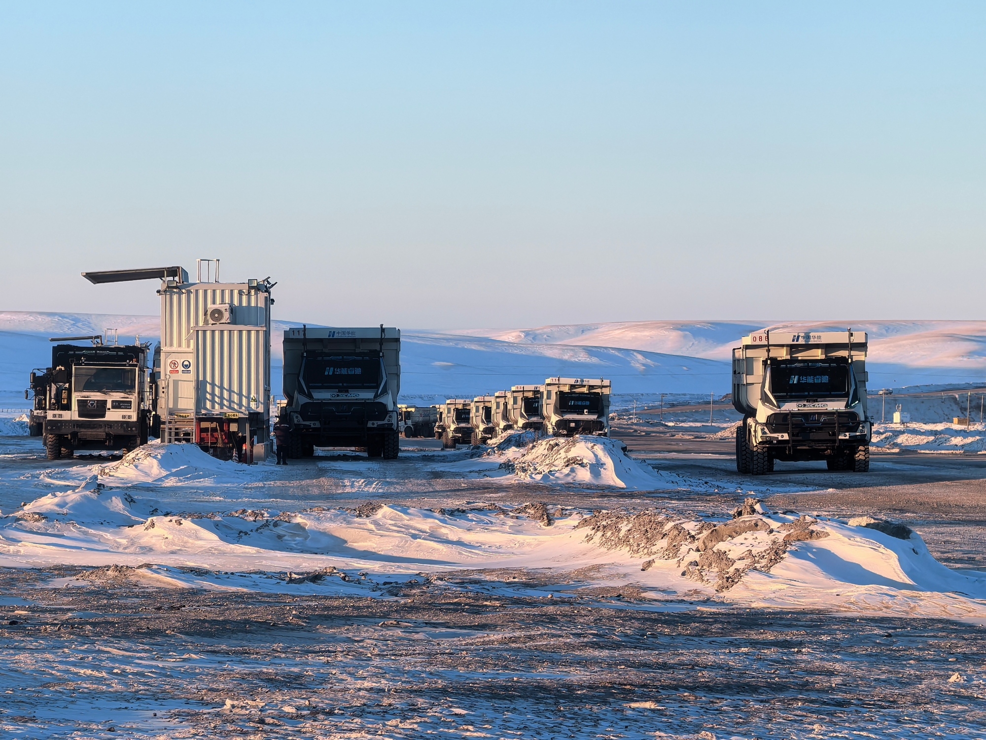從夏日的綠草如茵到冬日的白雪皚皚,內(nèi)蒙古華能伊敏露天礦的年均溫差超60攝氏度。12月,氣溫已降至零下30多度,白雪覆蓋的礦坑中,百臺無人純電礦卡正以“鋼鐵洪流”之勢穿梭前行。