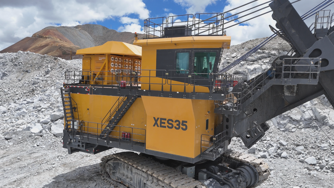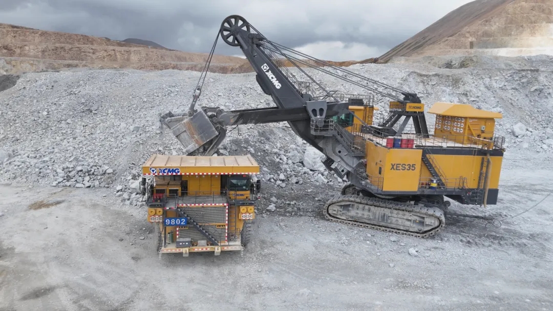 在海拔5300米的高原銅礦上,徐工XES35電鏟揮動(dòng)35立方米鏟斗,將約65噸礦石精準(zhǔn)裝入徐工XDE240礦車,高效協(xié)同盡顯卓越性能。在高海拔低氧的極限工況下再創(chuàng)高產(chǎn)奇跡!