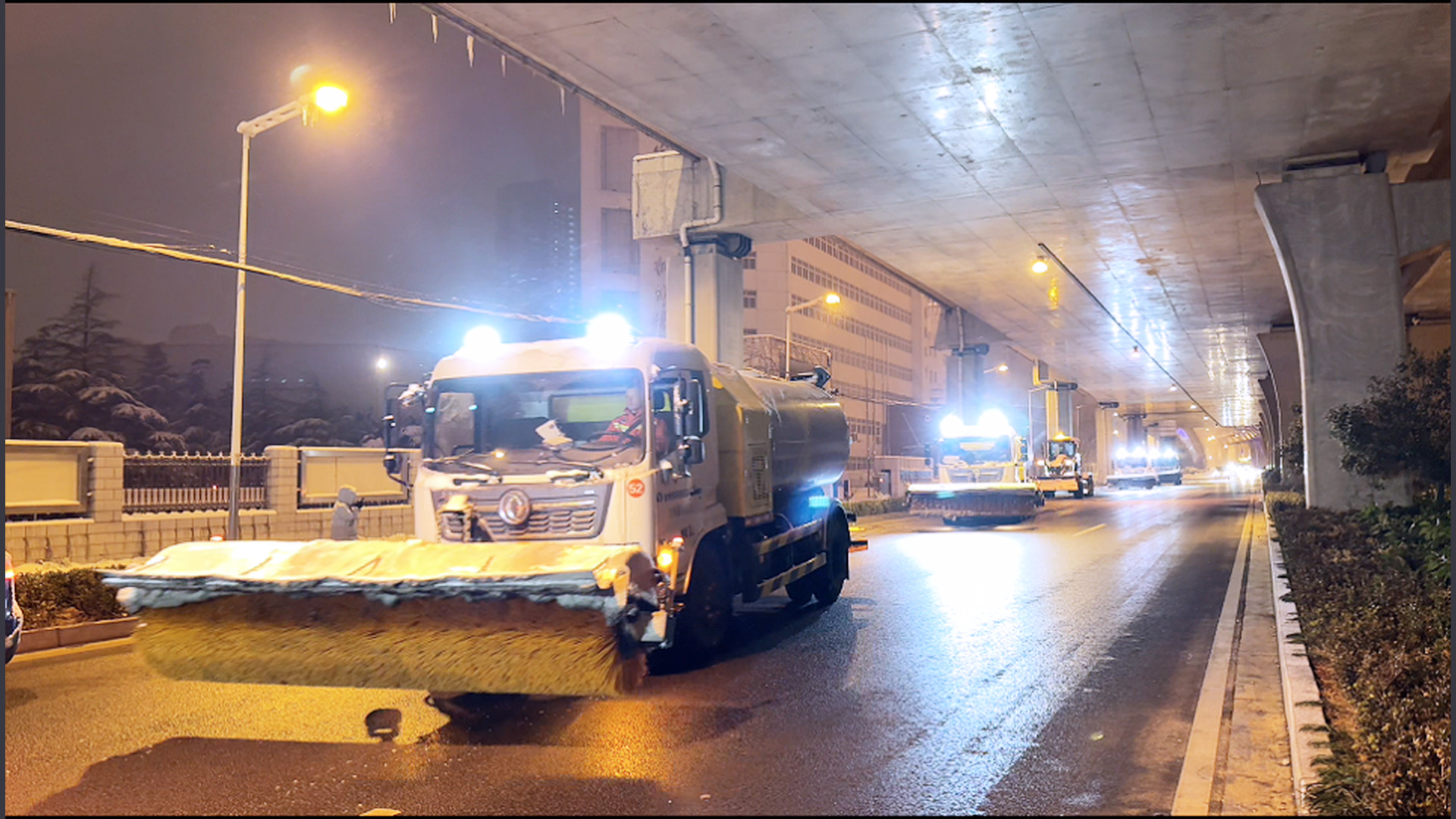 1月20日0點,徐工除雪設(shè)備和救援隊在徐州東三環(huán)快速路集結(jié),對整條三環(huán)高架道路除雪,保障清晨的正常通行。