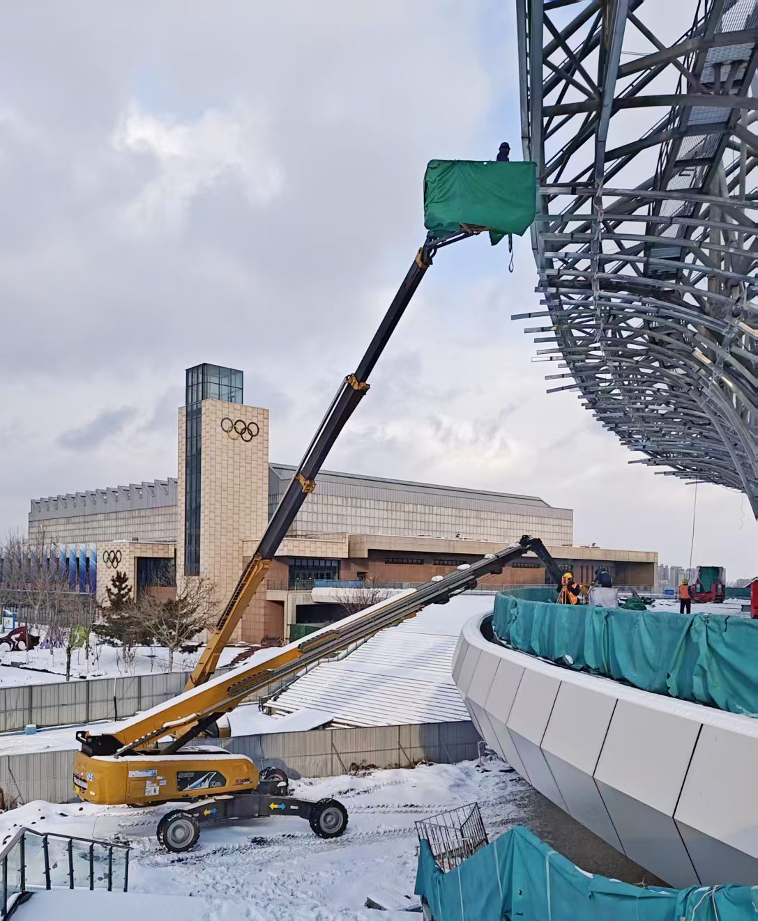 近日,全國多地氣溫驟降,城市迎來普遍降雪。位于山東煙臺(tái)的蓬萊體育館建設(shè)項(xiàng)目正面臨冬季雪天施工的嚴(yán)苛考驗(yàn),為保障施工進(jìn)度,XGS30K、XGS40K、XGS45K、XGS58K等16臺(tái)徐工高米數(shù)柴動(dòng)直臂高空作業(yè)平臺(tái),組成“高空攻堅(jiān)隊(duì)”頂雪作業(yè)。