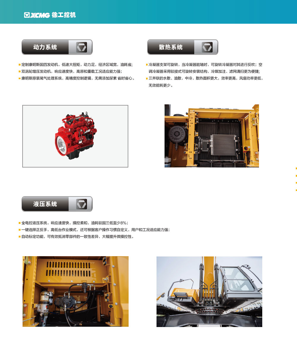 徐工定制化康明斯雙增壓發(fā)動(dòng)機(jī),儲(chǔ)備動(dòng)力足,響應(yīng)快,高原適應(yīng)性好;